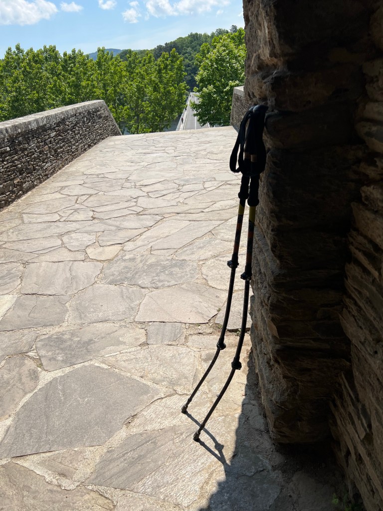 At the top of the bridge, my hiking poles broke the fall of a fellow peregrino who had turned to take in the view. He was not hurt, but my poles were bent into two perfect crescent moon shapes.