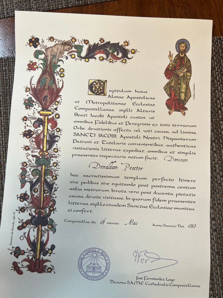 In the mean time, I got the required additional stamps to fill my pilgrim’s passport and receive my official “Compostela.”
