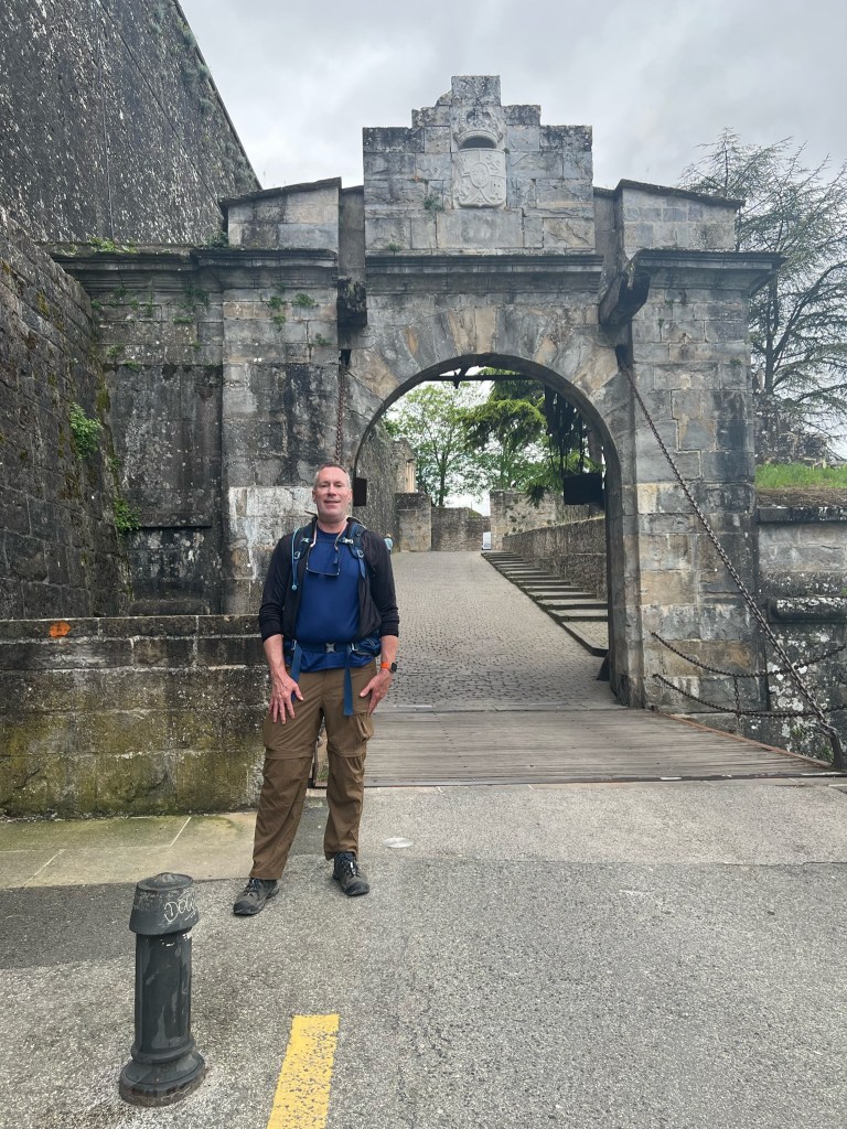 I entered Pamplona today through the medieval stone gate that still had its drawbridge mechanism. A fellow peregrino took a photo for me.